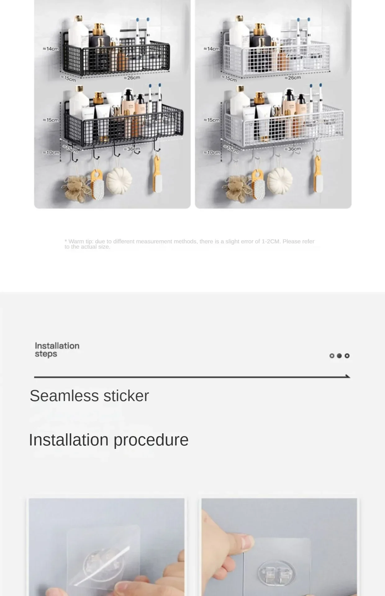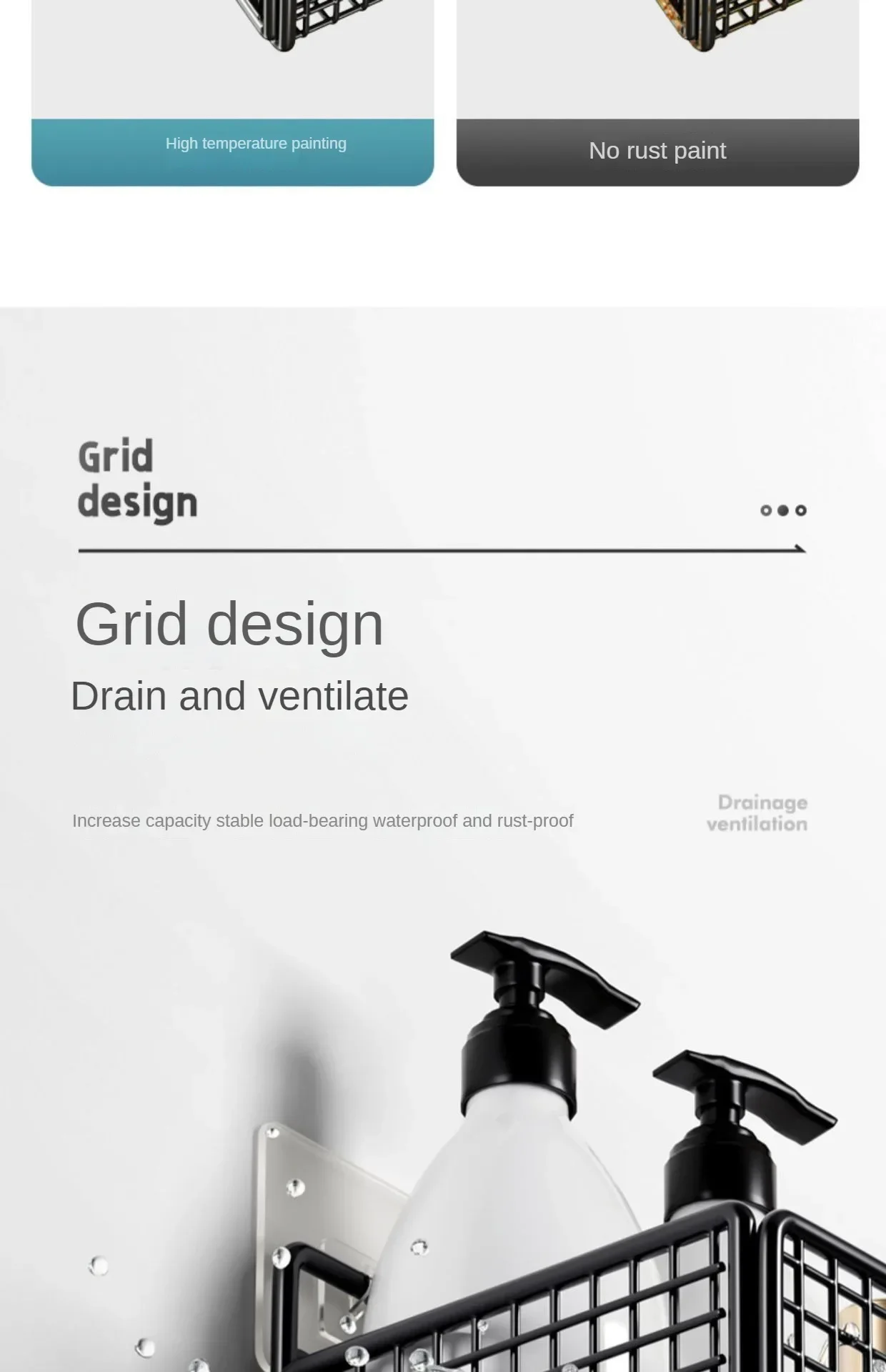 Uso: Ideal para guardar artículos de baño (shampoo, gel, jabón, cepillos, toallas pequeñas, etc.) o en la cocina (especias, utensilios).
