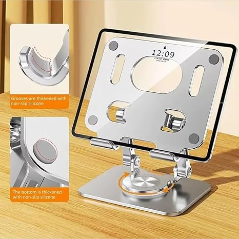 Soporte Metálico Plegable y Giratorio para Tablet iPad – Universal de Escritorio